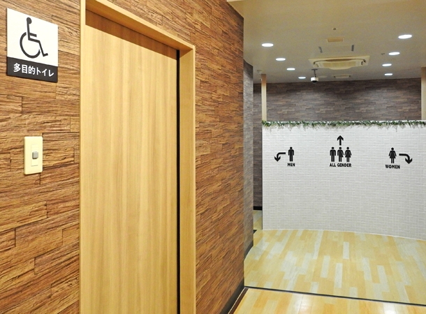 | メモ | : | 建物の2階にあります。 オールジェンダートイレ バリアフリートイレ 男性用トイレ 女性用トイレ ◎ダイバ−シティを目指し、LGBTQ+にも配慮した「個別トイレ」 『ちがいを ちからに 変える街。渋谷区』をスローガンに掲げ、渋谷区が推進する「ダイバーシティ型のまちづくり」にも積極的に取り組む。中でも注目は「男性用トイレ」「女性用トイレ」、障がい者や赤ちゃんを抱える親子向けの「多目的トイレ」に加え、性的マイノリティ(LGBTQ+)に配慮し、性差関係なく誰でも自由に使える「ALL GENDER(オールジェンダー)の個室トイレ」を導入している。隣の男性、女性トイレが混み合っているときなどにも便利だ。 地下1階から地上6階の計7フロア |