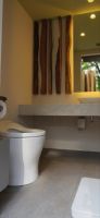| メモ | : | 日本財団(港区)が展開する、建築家らが区内の公衆トイレ17カ所をリデザインする「THE TOKYO TOILET」プロジェクトのトイレ。設計は隈研吾氏。 小便器=「しかく小屋」(1.84平方メートル) 手摺付小便器=「さんかく小屋」(2.14平方メートル) ベビーベッドやオストメイト用設備を備えるユニバーサルトイレ=「まんまる小屋」(6.12平方メートル) 幼児用トイレ=「のびのび小屋」(3.24平方メートル) 一般トイレ=「すっきり小屋」(3.61平方メートル) トイレタイトルは「森のコミチ」。低層の山になっている地形に、5つの小屋(個室)とそれらをつなぐ動線となる小道(=森のコミチ)を作り、集落のような「トイレの村」となっています。小屋の外壁には吉野杉のルーバーを鉄骨で付けたほか、各小屋内にはメタセコイア、ケヤキ、桜などの丸太を装飾し、天井は異なる濃淡の緑をあしらっています。 |